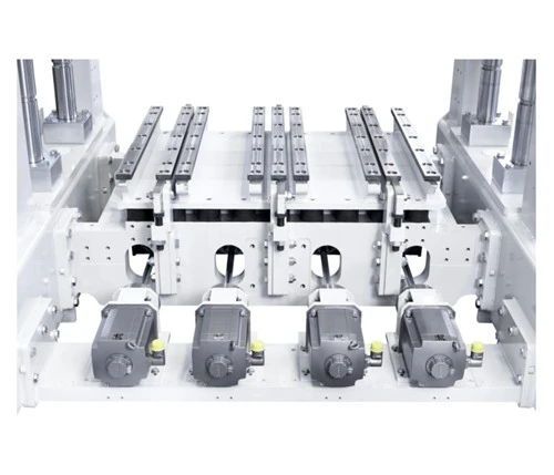 systém se dokáže flexibilně přizpůsobit různým potřebám výroby betonových výrobků. ● Osm vibračních jednotek s mechanickým vyvážením individuálně nastaveným osmi servopohony ● Osm hřídelí motoru s elastickými spojkami ● Osm servomotorů, každý namontovaný na externím nosníku pro izolování vibrací na rámu motoru ● Vibrační stůl nevyžaduje olejovou lázeň (ekologické)