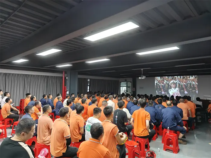 3. září bylo dnem velkého významu pro celý čínský lid. V tento zvláštní den předseda Fujian Quangong Machinery Co., Ltd Fu Binghuang a generální ředitel Fu Xinyuan vedli všechny zaměstnance v konferenční místnosti společnosti, aby sledovali velkou vojenskou přehlídku a byli svědky tohoto vzrušujícího historického okamžiku.