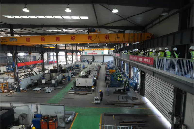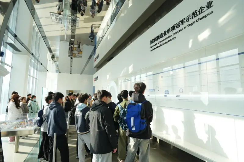 Následně učitelé a studenti navštívili obráběcí dílnu a vstoupili do předních linií inteligentní výroby. V dílně pracovala vysokou rychlostí CNC obráběcí centra a automatizované montážní linky, robotická ramena přesně dokončovala různé operace a digitální výrobní systém zobrazoval v reálném čase průběh výroby a data sledování kvality, což demonstrovalo synergický efekt „zelené továrny“ a „inteligentní dílny“. Techničtí odborníci společnosti provedli učitele a studenty celým procesem od zpracování surovin až po montáž zařízení se zaměřením na vysvětlení aplikace klíčových technologií, jako je propojení CNC zařízení a přesné snímání stavu výroby. Studenti aktivně spolupracovali s technickými odborníky, diskutovali o otázkách, jako je optimalizace zpracování a techniky údržby zařízení, čímž se vytvořila silná učební atmosféra na místě.